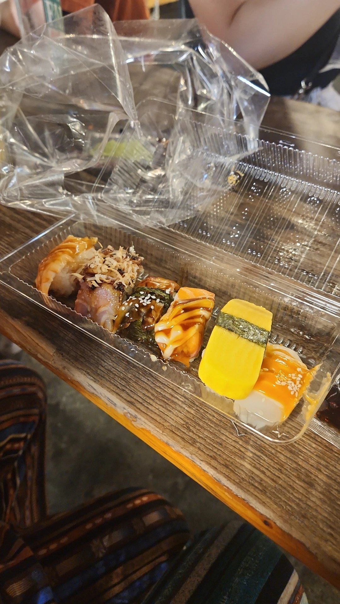 초밥 먹고 꼬치 먹고 옷 구경하고 굿즈 같은 작은 팔찌도 보고